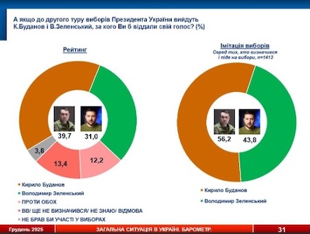 І це добре розуміють й соціологи. Підозрюю саме через це SOCIS уже змоделював другий тур виборів між Зеленським та Будановим. І результат показовий: Буданов перемагає чинного президента з відривом у понад 12%. Тому це ще один аргумент на користь думки про те, що електоральний потенціал начальника ГУР не слід недооцінювати.